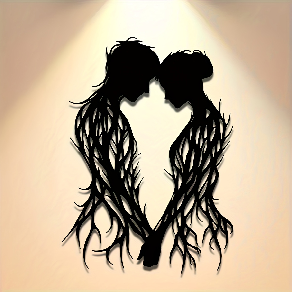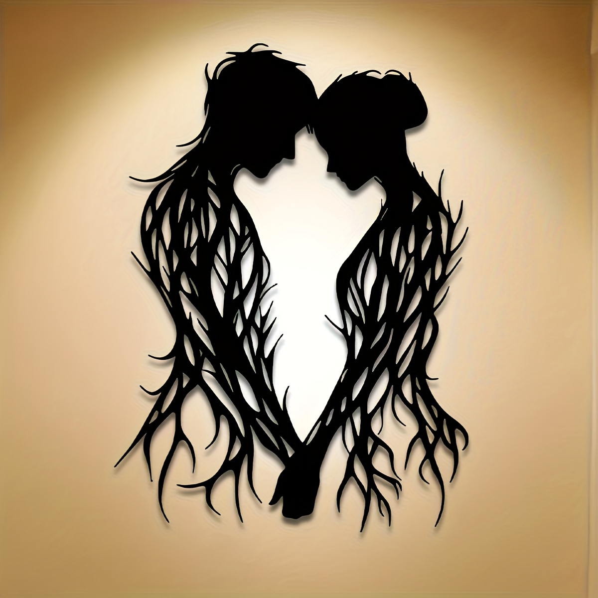 1pc Romantic Couple in Love Metal Wall Sculpture - Black & Brown Interlocking Hearts, Elegant Wedding/Valentine's/Mother's Day/Anniversary Gift - Indoor/ Decoration for Home, Patio, Balcony - Housewarming or Independence Day